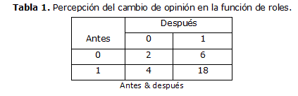 Para todos los casos estudiados se cumple la hipótesis de nulidad (h0): el número de cambios de opinión parece ser el mismo al inicio de tratamiento y al término del mismo, revelando muy poca influencia en los cambios de opinión.