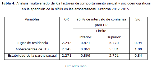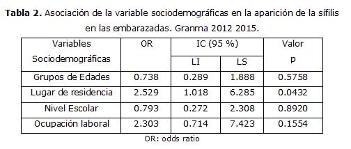 Factores sociodemográficos y de comportamiento sexual, asociados a la aparición de sífilis en embarazadas. Granma. Enero 2012 - 2015