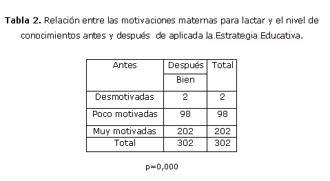 3. Después de la intervención, todas las embarazadas habían adquirido buenos conocimientos, una adecuada actitud y gran motivación acerca de la lactancia materna.