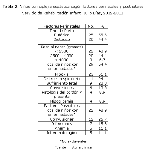 Factores condicionantes y entorno social en niños con diplejía espástica. Servicio de Rehabilitación Infantil Julio Díaz, 2012-2013