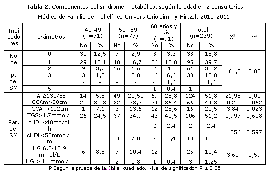Síndrome metabólico en adultos mayores de 40 años en 2 consultorios médico de familia